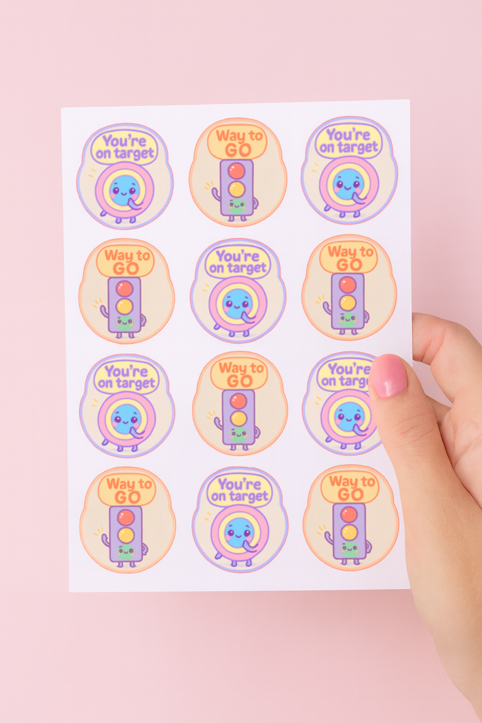 WAY TO GO & YOU'RE ON TARGET (48 stickers)