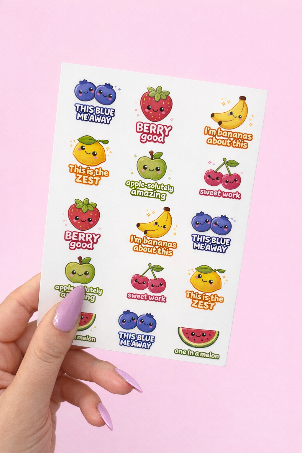 FRUIT STICKER PACK (60 stickers) is backordered and will ship as soon as it is back in stock.